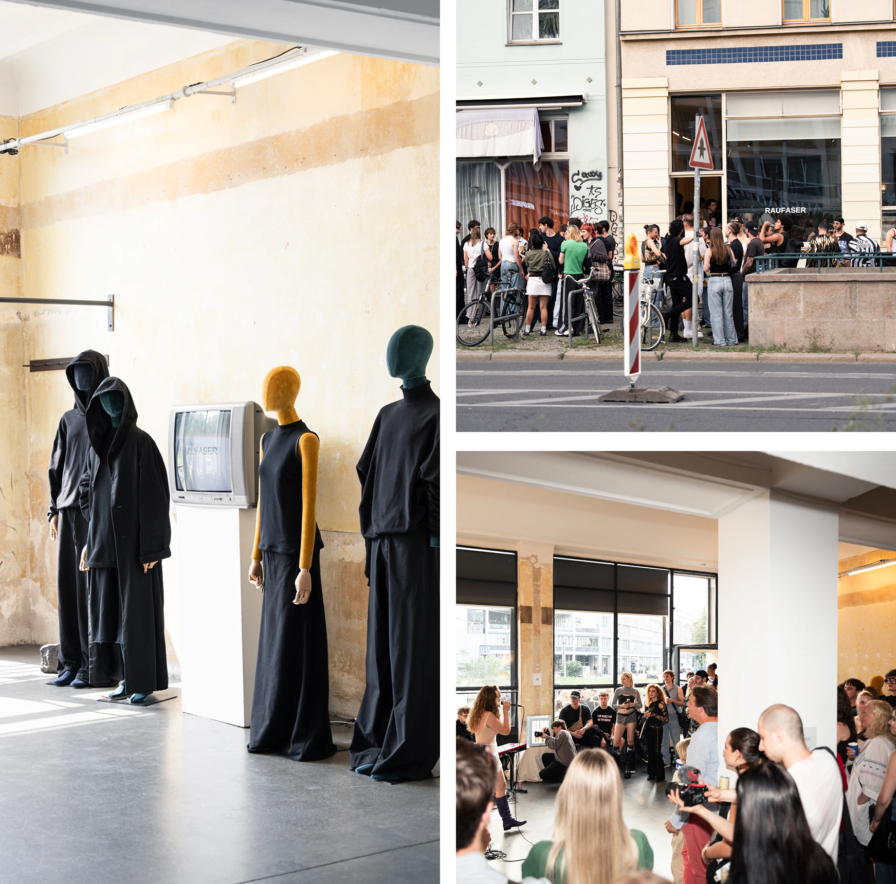 RAUFASER is among 20 Berlin fashion brands selected for fashion POSITIONS 2025, part of berlin art week. the format blurs the line between fashion and art, presenting collections as installations to over 30,000 visitors each year.